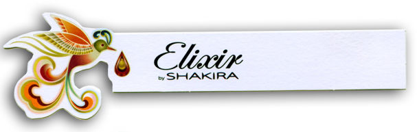 El probador de perfume (esa tira de papel que nos dan para pulverizar el perfume cuyo aroma deseamos conocer) de la marca Elixir by Shakira, llevaba en uno de los extremos una parte de la imagen gráfica utilizada en la presentación del producto y el logotipo.
