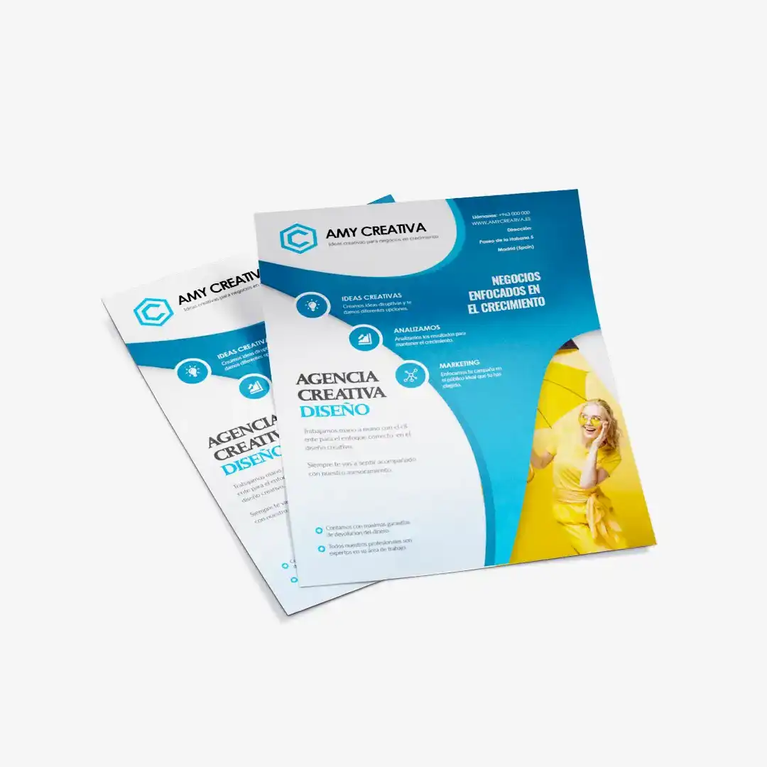 - Los flyers, con los que podrás dar a conocer tu empresa en un sinfín de sitios; y las pegatinas, que te permitirán que tu negocio o actividad sea conocida en toda la ciudad.
